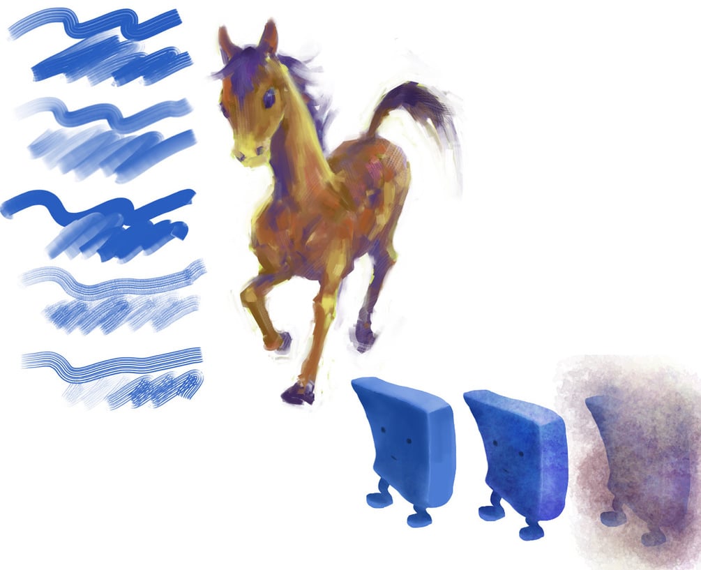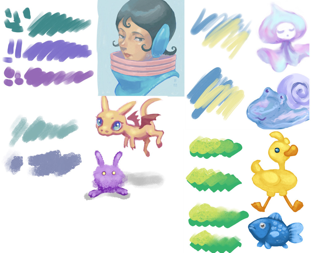 A set of 31 brushes suitable for applying bright colors over dark colors or using a dropper frequently.